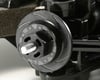 The TT-02 chassis, with its adaptable and balanced shaft-driven 4WD system, ensures excellent stability through a longitudinal layout featuring the battery on the left and the motor on the right. Its design incorporates identical left and right suspension arms and uprights for straightforward assembly, along with easily maintainable gearboxes. The chassis offers versatility with two wheelbases, two ground clearance settings, two tread setups, and a selection of ten gear ratios. Not only functional, it boasts aesthetic appeal with brake disc-shaped wheel hubs, stylish front bumper supports, gun metal color 10-spoke wheels, and sleek slick tires, delivering a sporty appearance.